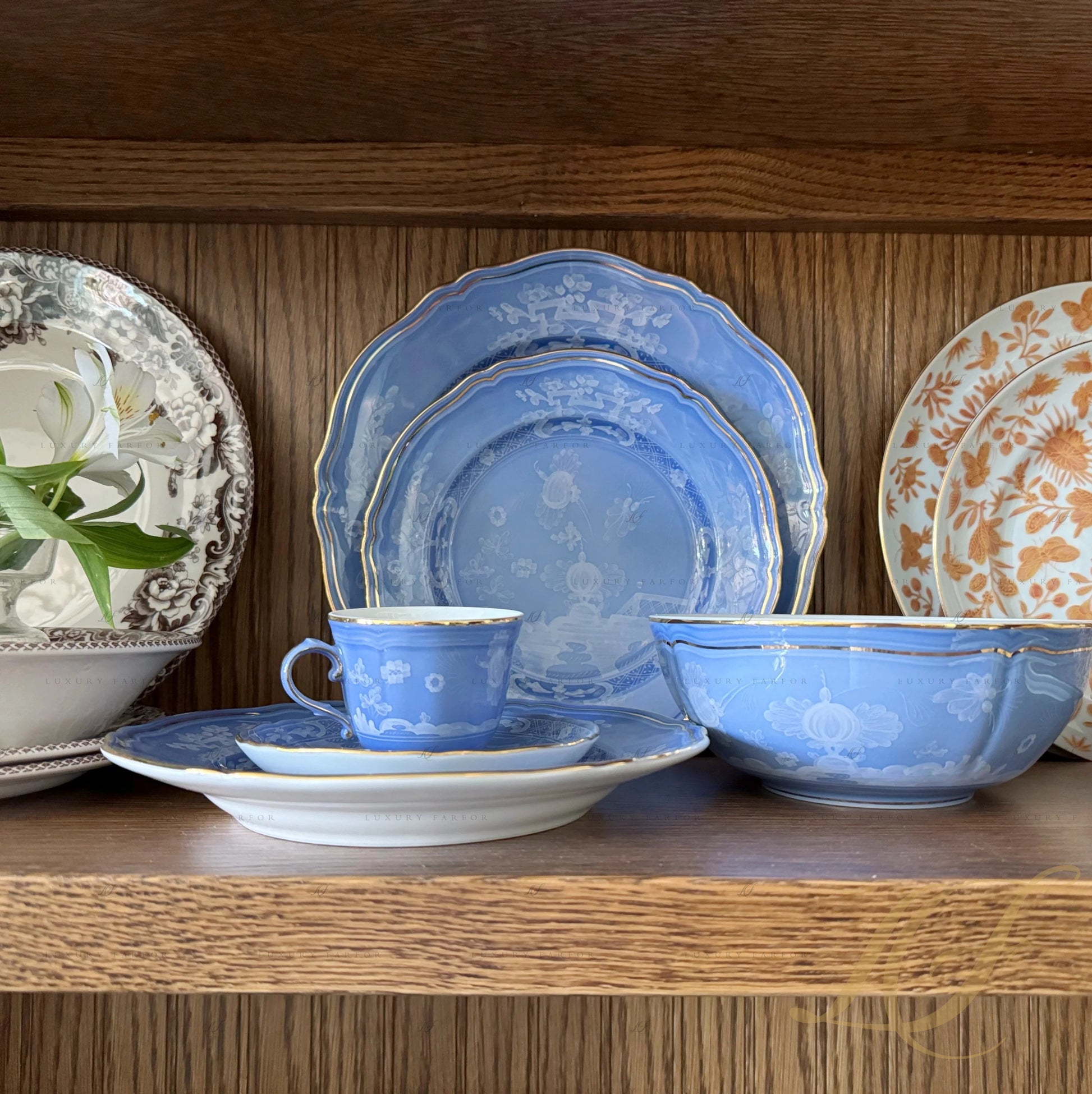 Combined with its saucer and the other coffee set elements from the same collection, the periwinkle blue coffee cup becomes an emblem of the perfect fusion of Oriental decorative art and Italian craftsmanship, turning every coffee break into a unique and memorable experience.