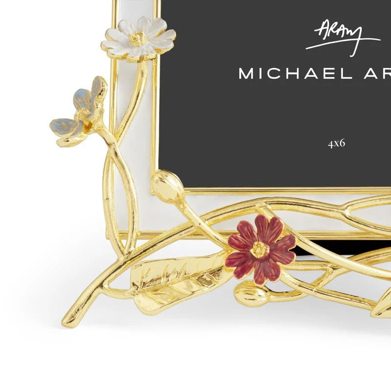 A poetic tribute to nature’s quiet beauty, the Wildflowers Frame is handcrafted in sculpted zinc with hand-applied enamel accents and glass. Inspired by 19th-century botanical illustrations, its delicate details reflect the fleeting charm of uncultivated blooms. Designed to hold a 4x6 photo, this luxurious piece includes an easel back and transforms a simple memory into an artful display of timeless elegance.